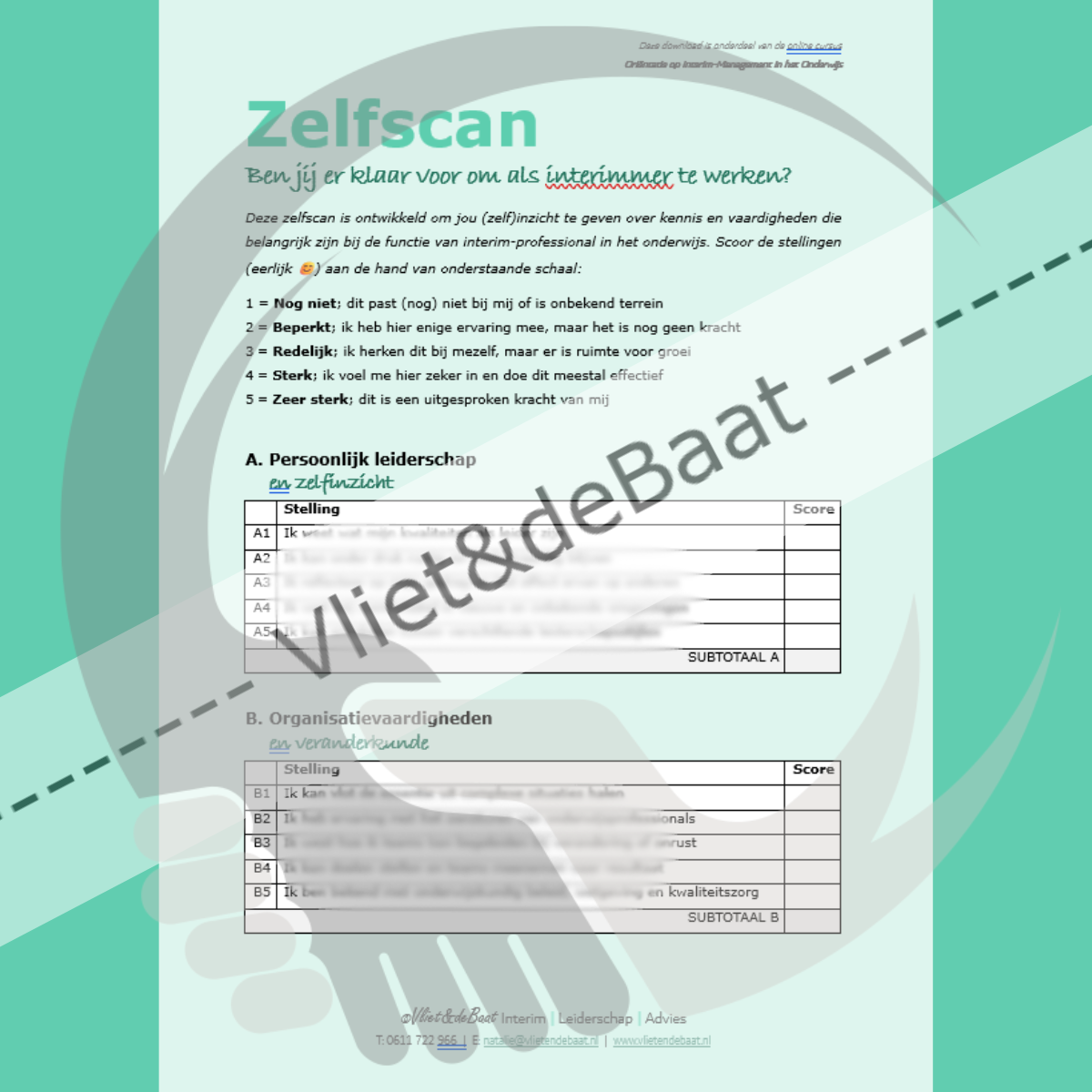 De zelfscan is een slimme en praktische vragenlijst waarmee je in kaart brengt waar jij als startend interimmer in het onderwijs staat. Ben je al klaar voor de stap? Waar liggen je kansen of ontwikkelpunten? De scan geeft je direct inzicht.
