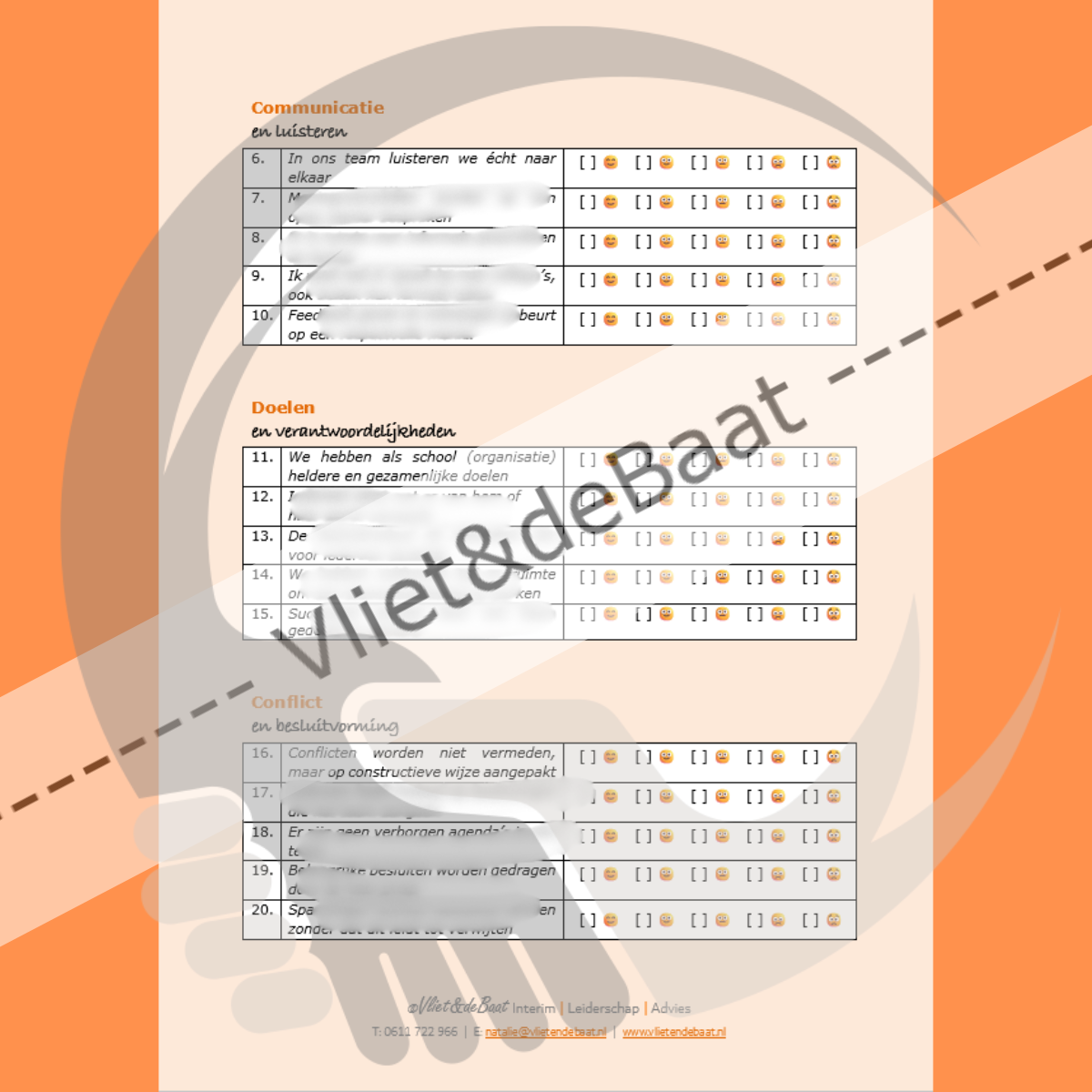 De Smiley-Test maakt op een laagdrempelige en visuele manier zichtbaar wat er in jouw team onder de oppervlakte speelt. Een krachtig hulpmiddel om snel gevoel, samenwerking en spanningen in kaart te brengen.